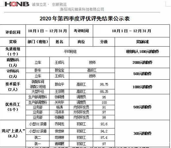 洛阳betway必威电竞手机客户端下载轴承2020年年度评优评先表彰