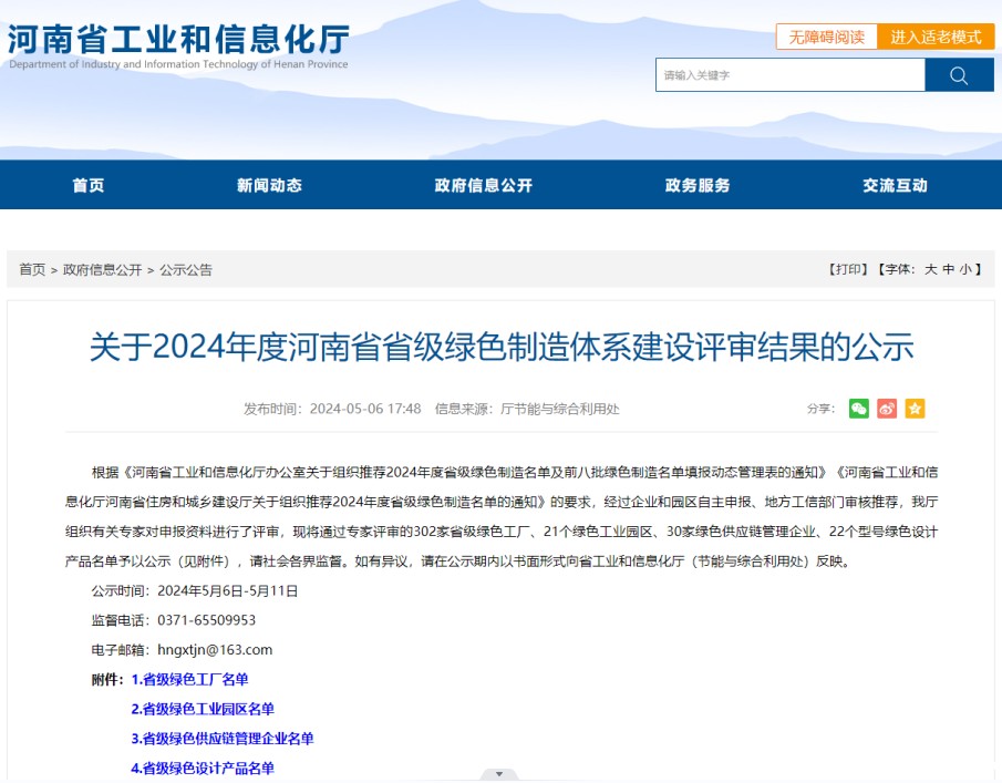 近日,河南省工业和信息化厅公示了2024年度省级绿色工厂、绿色工业园区等名单,洛阳betway必威电竞手机客户端下载轴承科技有限公司光荣获评“2024年度省级绿色工厂”。