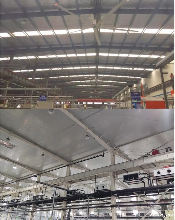 1、营造清凉舒适的车间环境。北区35000平方米的数智化车间,中央空调、新风系统全力开放;南区车间配置多个排气通风降温设备。