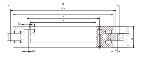 | d | D | H | H1 | H2 | C | d1 | dn | dm | 内圈 | 外圈 | 动 | 静 | 动 | 静 | |||||||||||||
